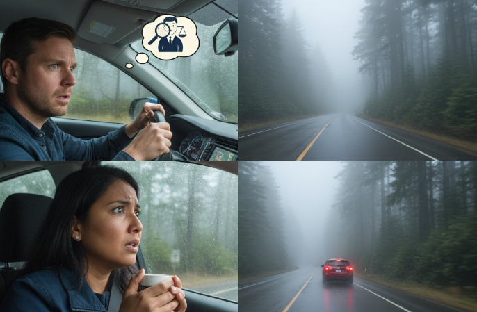 - Adverse weather conditions — fog, rain, or icy roads can drastically increase danger.