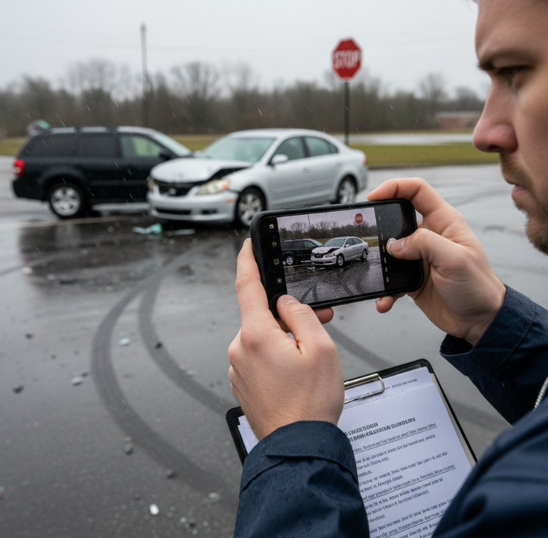 | 4. Document the accident | Photos, notes, witness contacts | At the scene |