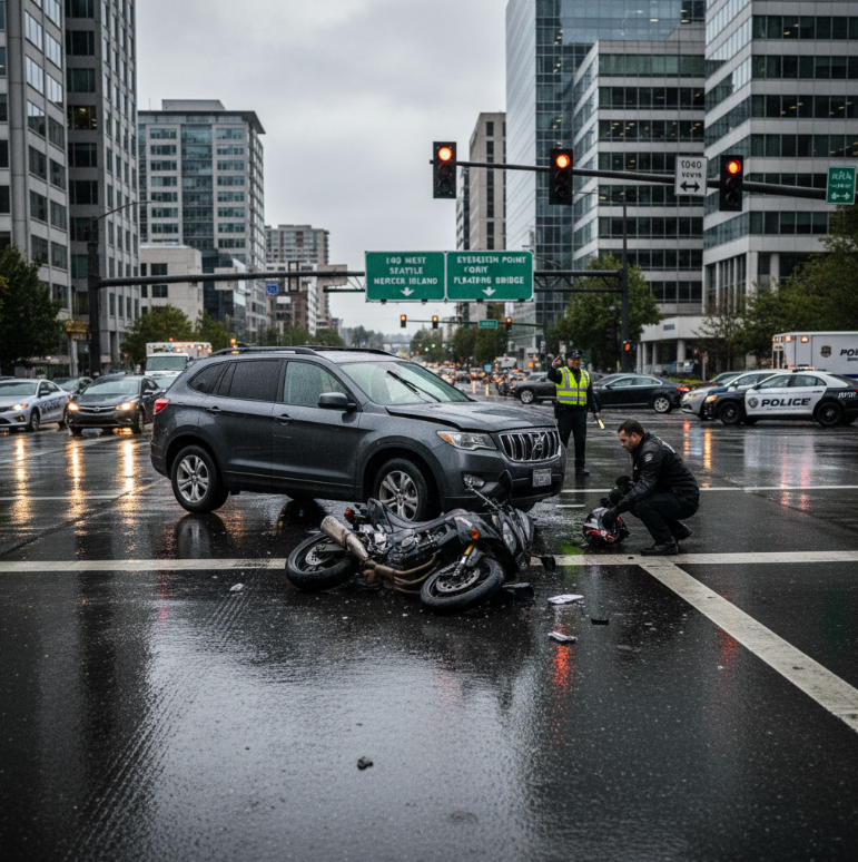 Bellevue and the greater Seattle area present unique hazards for riders: dense traffic, frequent rain, active construction, and high-speed corridors such as I‑90 and SR‑520. These conditions contribute to more severe motorcycle crashes.