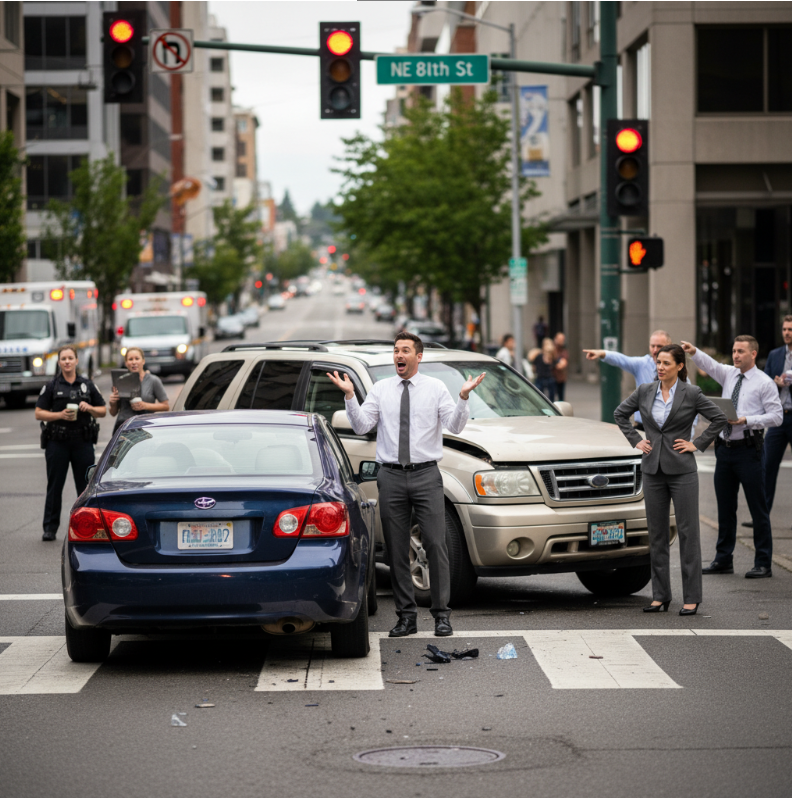 Imagine you are stopped at a red light on NE 8th Street in Bellevue when a distracted driver rear-ends you.